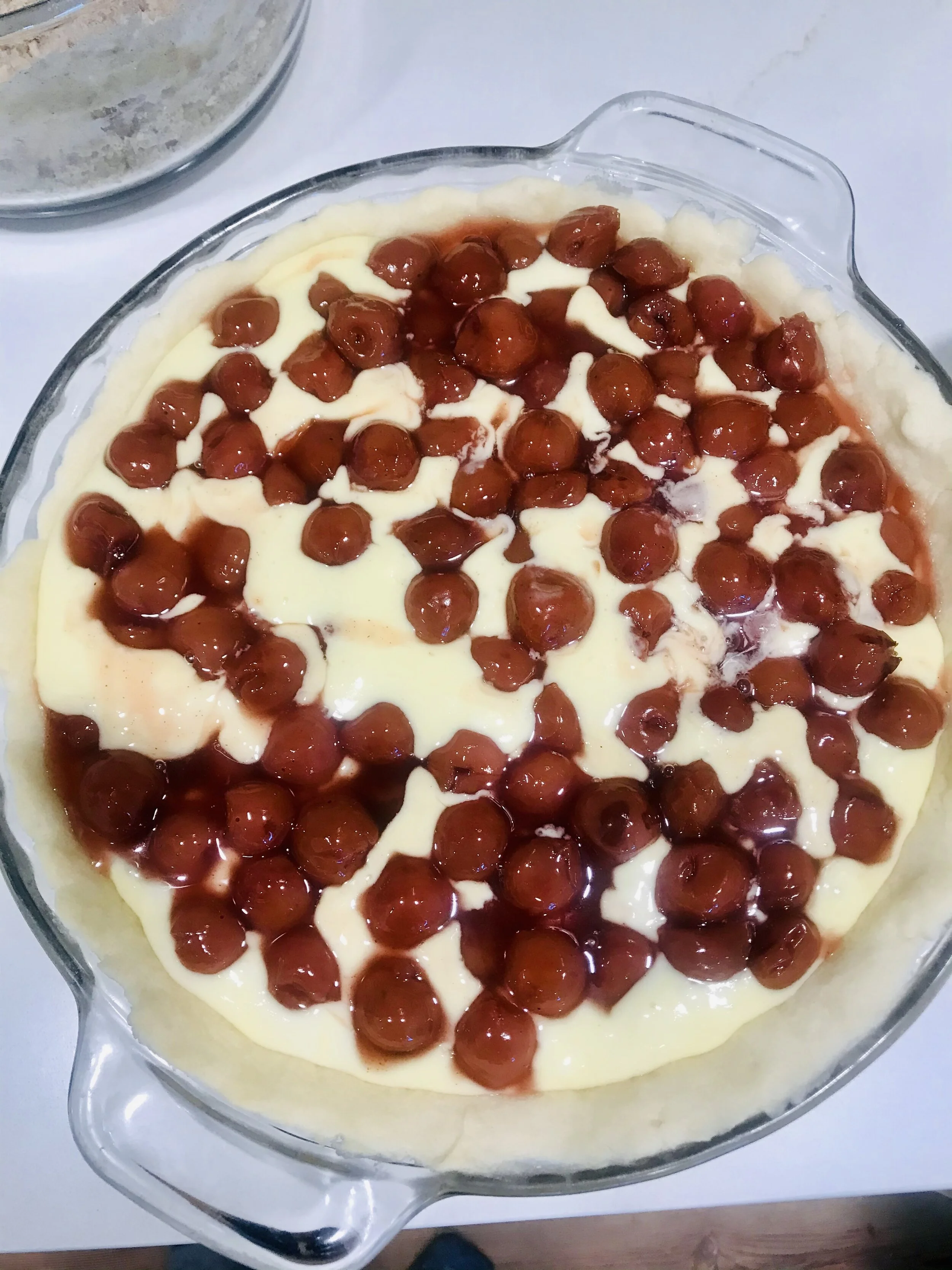 Recently, I received some requests to make a sour cream pie. Now, I admit, I took some liberties in coming up with this delicious recipe. Traditional sour cream pies have raisins. Raisins do have a place in baking…but I’m going to defer them to Oatmeal Cookies. Cherries, on the other hand, are wonderful in pie. They belong in pie. Cherries are a perfect fruit for the holidays, and the are scrumptious in this particular pie!
